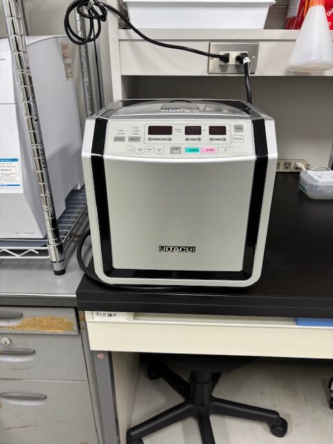 化学分析の基本装置です。最大23,000xgまで遠心が可能です。栄養成分や機能性成分だけではなく、遺伝子やタンパク質の分析にも幅広く使用します。